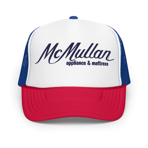 The official McMullan trucker hat! Stand out from the crowd with this trendy foam trucker hat! This head accessory is made with high-quality polyester and foam that guarantees a premium look and feel. The foam trucker hat has an adjustable snap that ensures a comfortable fit, and the mesh back provides great breathability. The matching color braid gives the hat an extra oomph. Style it with your favorite outfit any time of the day.